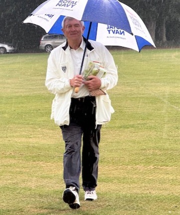A day that started in raim, ended in sun. Umpire Nick Harris, Groundsman Harry Bates, and legends Adam Jay & Guy Ladenburg.