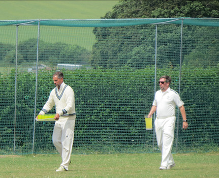 Saints started well getting to 24 without loss from just 4 overs but the wiley Ladenburg (2 wickets) and Gray (1 wicket) bowled patiently-straight on a pitch that offered more to bowlers than batters and were rewarded with three quick dismissals including a fine one-handed caught and bowled to Ladenburg.