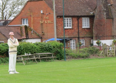 The adjacent pub which bears the name "Bat & Ball" with two Bs, two As, two Ls, and an extra T. The bowling figures were Wood 2-23, Sargant 2-23, Ladenburg 2-23 and Morris 2-25; near symmetry at play.
