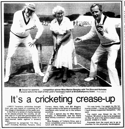 Newspapers previewed and reported on the charity matches at Broadhalfpenny Down